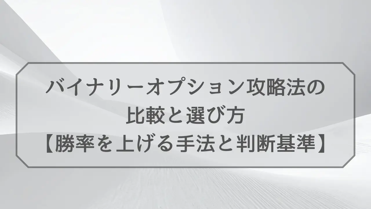 バイナリーオプション攻略の情報を集めても、手法が多すぎてどれが本当に勝てるのか判断できず、結局試しては負けるという状況に陥っていませんか。勝率・再現性・リスクの観点から攻略法を比較しないまま取り組んでも、自分に合わない手法で資金を減らしてしまいます。