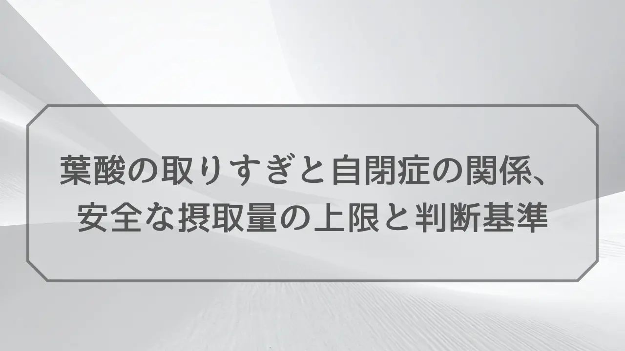 この記事では、葉酸と自閉症の関係を示す研究の現状、安全な摂取量の上限と判断基準、摂取量が気になるときの確認ステップを詳しく解説します。
